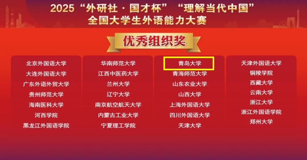 近日,2025“外研社·国才杯”“理解当代中国”全国大学生外语能力大赛全国决赛在北京外国语大学落下帷幕。我校文学与新闻传播学院江皓宇等学生表现出色,荣获多项国家级奖励。
